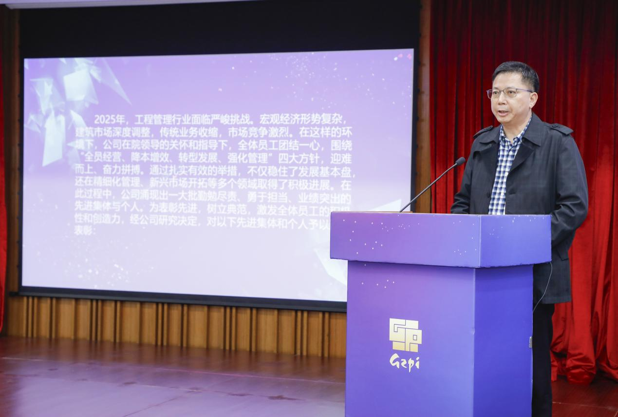 楊戈副總經理宣讀了公司2025年度先進部門、先進項目部、先進員工以及服務滿20年奉獻獎的表彰決定,會議為獲獎的集體和個人進行了頒獎。