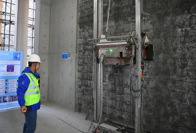 為提高生產(chǎn)質(zhì)量管理效率,中建三局一公司自主研發(fā)多種智能化創(chuàng)新工具并成功應(yīng)用于項目,其中包括:智能角尺、智能激光測距儀、智能靠尺、數(shù)字回彈儀等智能化實測實量工具、“檢到位”系統(tǒng)、大型設(shè)備智能化監(jiān)測系統(tǒng)、巡檢機器狗、人體骨骼機器人、抹灰機器人等。