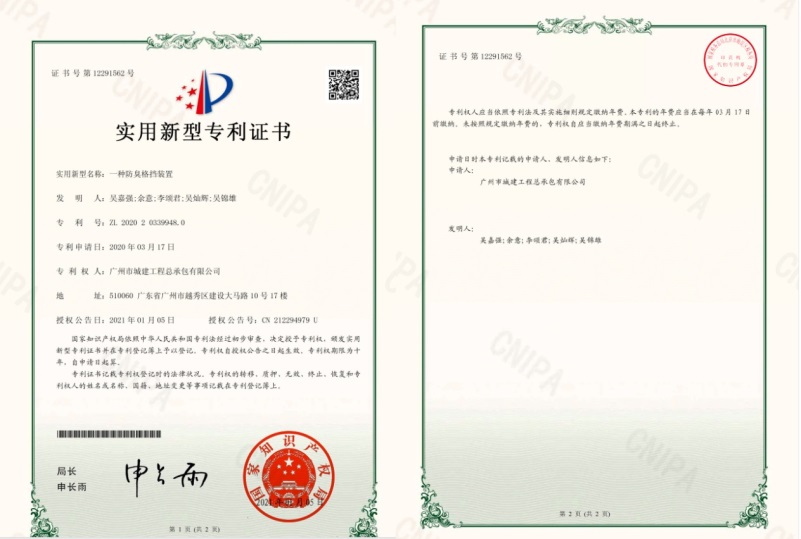 一種防臭格擋裝置實用新型專利證書