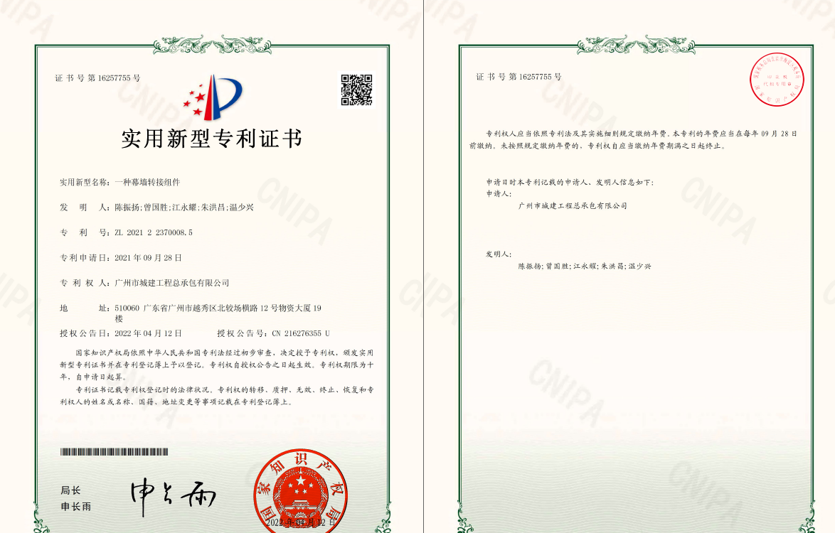 實用新型專利——一種幕墻轉接組件